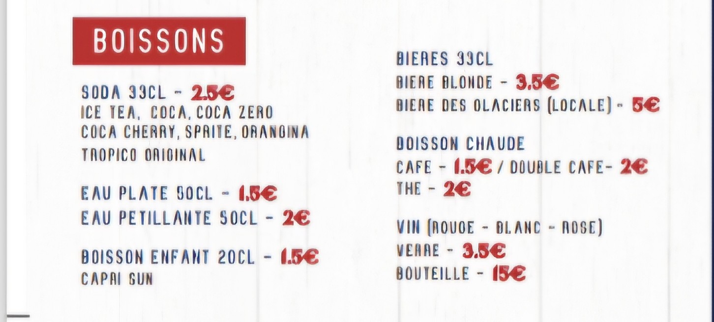 Pour vous désaltère nous vous proposons une large gamme de sodas ainsi qu’une sélection de bière locale et de bonne bouteilles de vin qui se marient à merveille avec notre carte